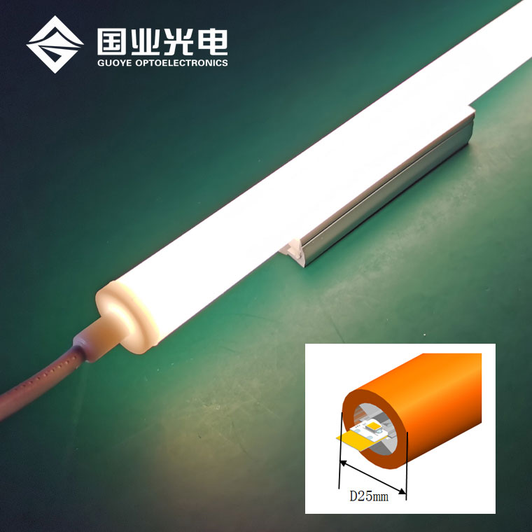 Priemer 22 mm a 25 mm, 360 stupňové neónové LED svetlo. Profesionálny dizajn konštrukcie, rovnomerné svetlo, mäkké svetlo, Silikónová okrúhla trubica, odolná voči žltnutiu a vysokej teplote, Dobrá flexibilita, možno ohýbať, ľahko tvarovať. Je to vodotesná ochrana IP67 pre vonkajšie nepriaznivé počasie. Neónové svetlo je vybavené spojovacím drôtom, koncovkami, pevnou sponou a ďalším inštalačným príslušenstvom, ktoré sa ľahko inštaluje. Vitajte a kontaktujte nás pre najnovšie špecifikácie produktu a dlhodobú spoluprácu v budúcnosti.